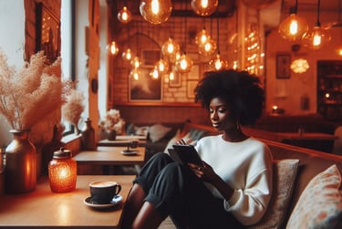 Picture soft lighting illuminating shelves filled with your books that whisper stories of beauty and resilience, while comfortable seating beckons patrons to unwind and lose themselves in reading, writing, creating, or just decompressing. In this serene space, the clatter of the outside world fades away, providing an escape from the chaos of everyday life. Here, every sip of coffee complements the turning of a page, creating a unique atmosphere that fosters connection and creativity. This future location isn’t just a bookstore; it’s a community hub where individuals can unwind, decompress, be in uninterrupted deep thought, & nurture their artistic souls in a peaceful, harmonious environment.