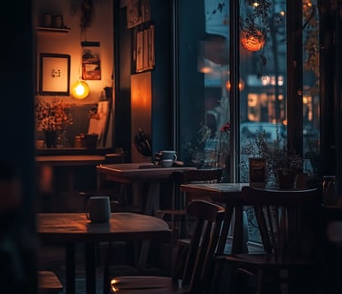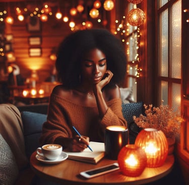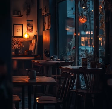 "As an introvert, imagine yourself inside The Inked Liberation Bookstore & Cafe: a warm & cozy coffee shop nook nestled in the cafe ambience of amber lights, vanilla & hazelnut scented candles, vintage decor, facing an intimate window while watching the rain dance its way down to the windowsill creating small puddles on the sidewalks & in the streets.
